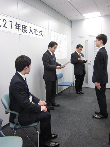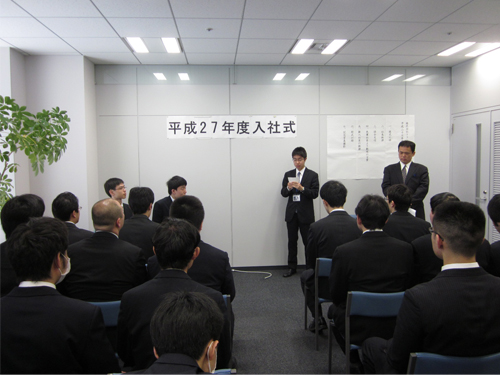 4月1日(水)に弊社の入社式が行われました。今年度は新たに2人の社員が入社しました。スタッフや先輩社員からは、新入社員へ歓迎や激励の言葉があり、新たなメンバーへの期待が感じられました。新入社員の方々は緊張した面持ちで入社式に臨んでいました。しかし、辞令交付や新入社員からの言葉などの際には、堂々とした立ち居振る舞いで、社会という新たな環境に対するやる気にあふれているように感じられました。